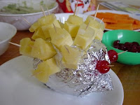 LaLa was wearing some crazy, I don't even know what to call it. The outfit/dress/thing is strange but the thing we thought was really weird was whatever shes got on her feet, you know at parties when you put cheese and pinaple on a stick and stick them in a foil covered potato? Yeah well that's all we could think of when we saw her 'shoes'. 0.o